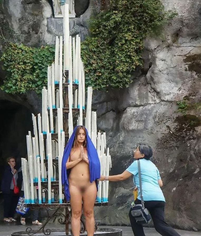 The performance artist stripped completely naked in front of a popular Catholic pilgrimage in Lourdes in France. Credit: Central European News